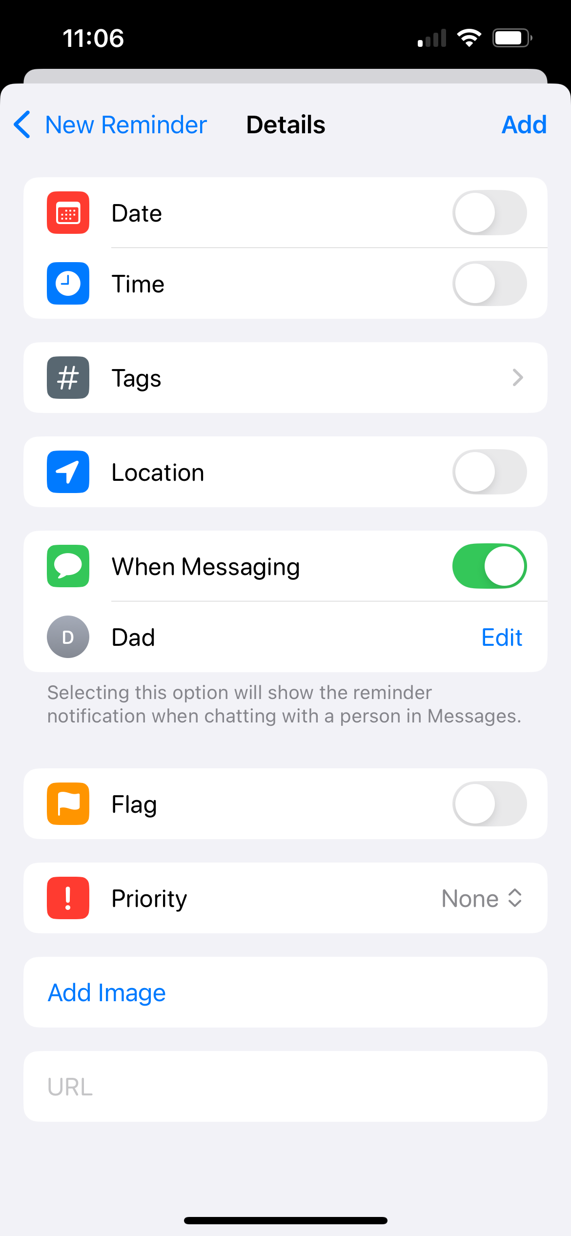 You can have the Reminders app remind you to do something when you’re messaging a specific person in your contact list. Honestly, I haven’t thought of many use cases for this feature, but maybe you will.