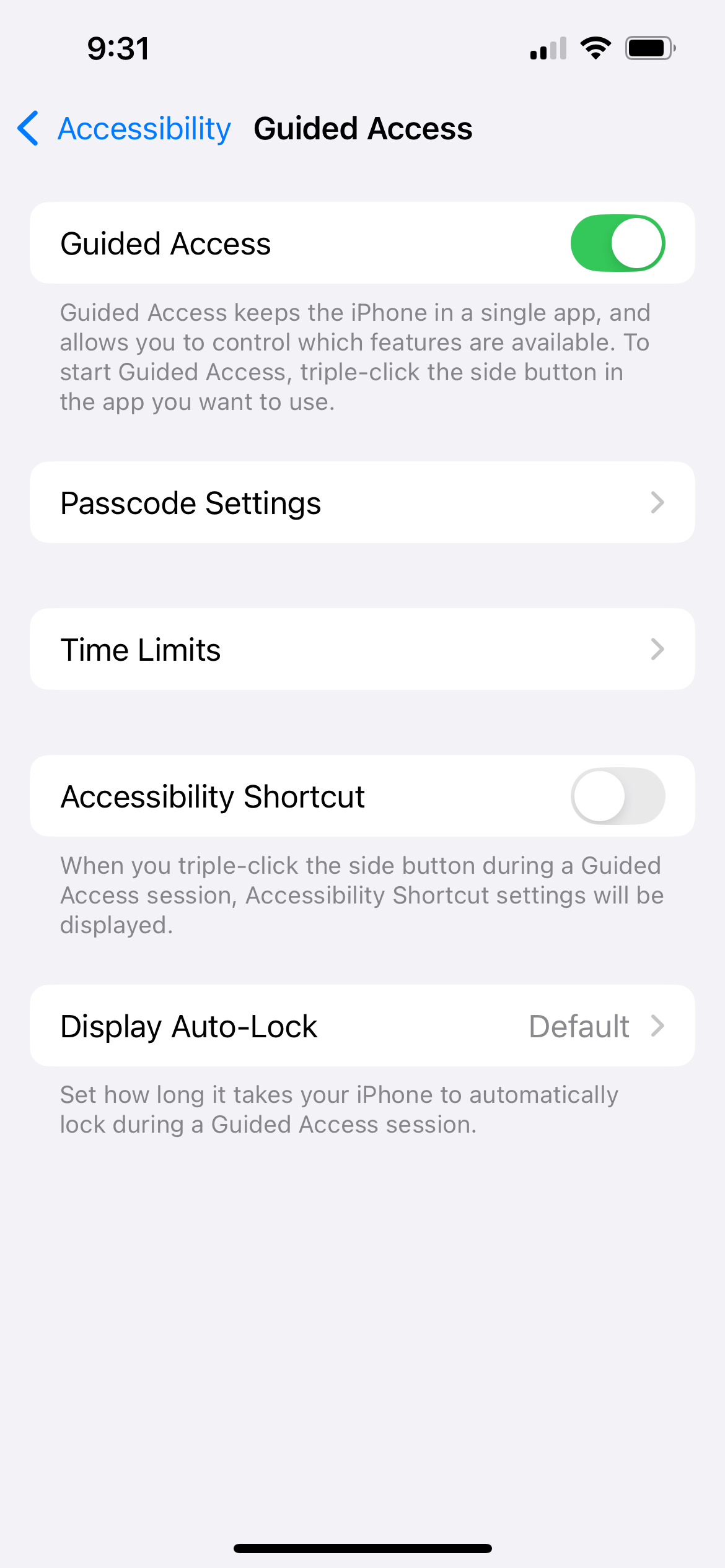 - Go to Settings > Accessibility > Guided Access, and turn on Guided Access.
