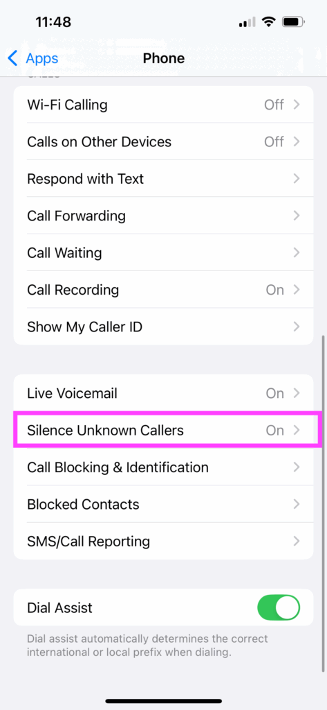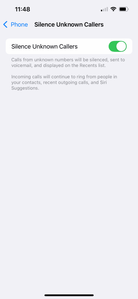 I typically have this setting turned on, but if I’m expecting a call from an unknown number, like the auto repair garage, I will turn the setting off.